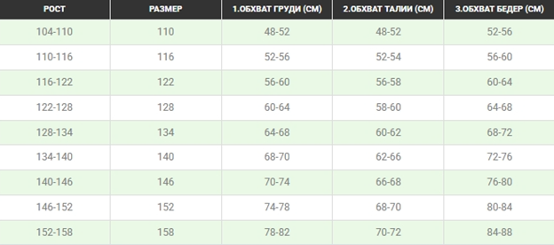 Будьте внимательны при выборе размера. Используйте только представленную здесь таблицу. Если нужна форма для ребёнка на вырост, лучше взять на размер больше!